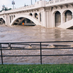 The 100 year flood was ridiculous this year and made headlines all around the world. A large weather systems moving towards the northwest was shoved up against the foothills of the Rockies and trapped there by the jet-stream for days. In Canmore, they get an annual rainfall of about 220 mm a year. In 36 hours, more than 210mm of rain fell, causing cougar creek to break it’s banks and wash away homes and bridges. Niagara falls has a flow rate of roughly 1800 cubic meters of water per second. The Bow was flowing at 1650 cubic meters per second at it’s peak. It was rough. Below is a few pictures collected from various sources of the web. It was a dramatic as these images seem. And then some.