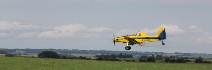 Saw this guy crop dusting near Spruce View. He must love his job! The Aircraft is actually C-GMBB, an Air Tractor AT-602 built in 2000 with a Pratt & Whitney PT6A-60AG turboprop engine (1,050 shaft hp, 783 kW), registered to Morse Bros. Ltd.